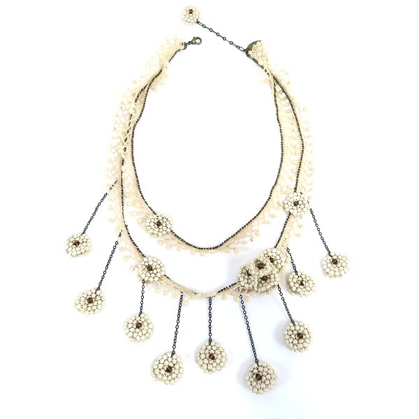 > #ae シビラ Sybilla ネックレス ニ連 ベージュ ブロンズ ビーズ 花モチーフ お花 レース 編み 944870 k01