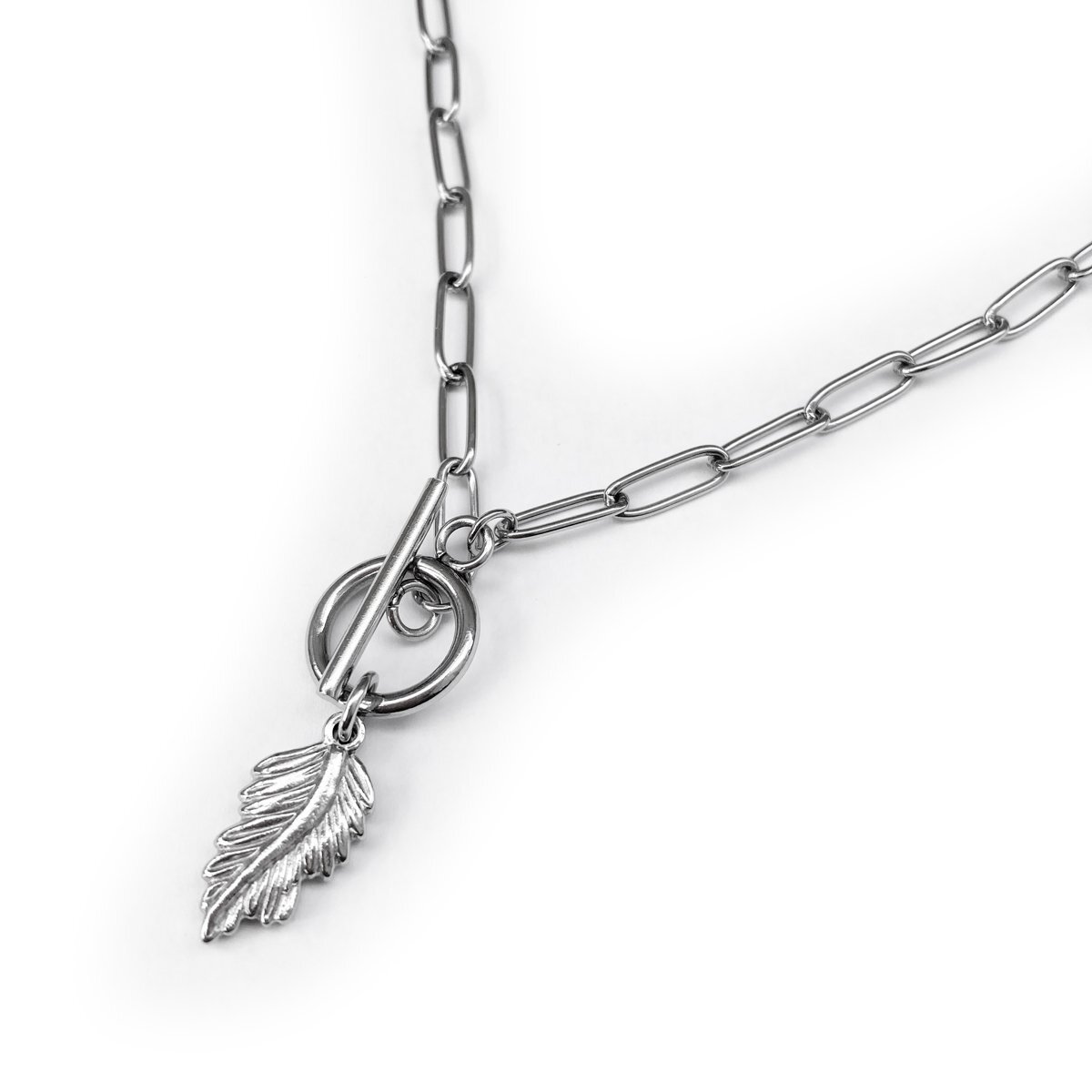 - ステンレス製 リーフ マンテルネックレスチョーカー 幅約4.2mm 約38.5cm