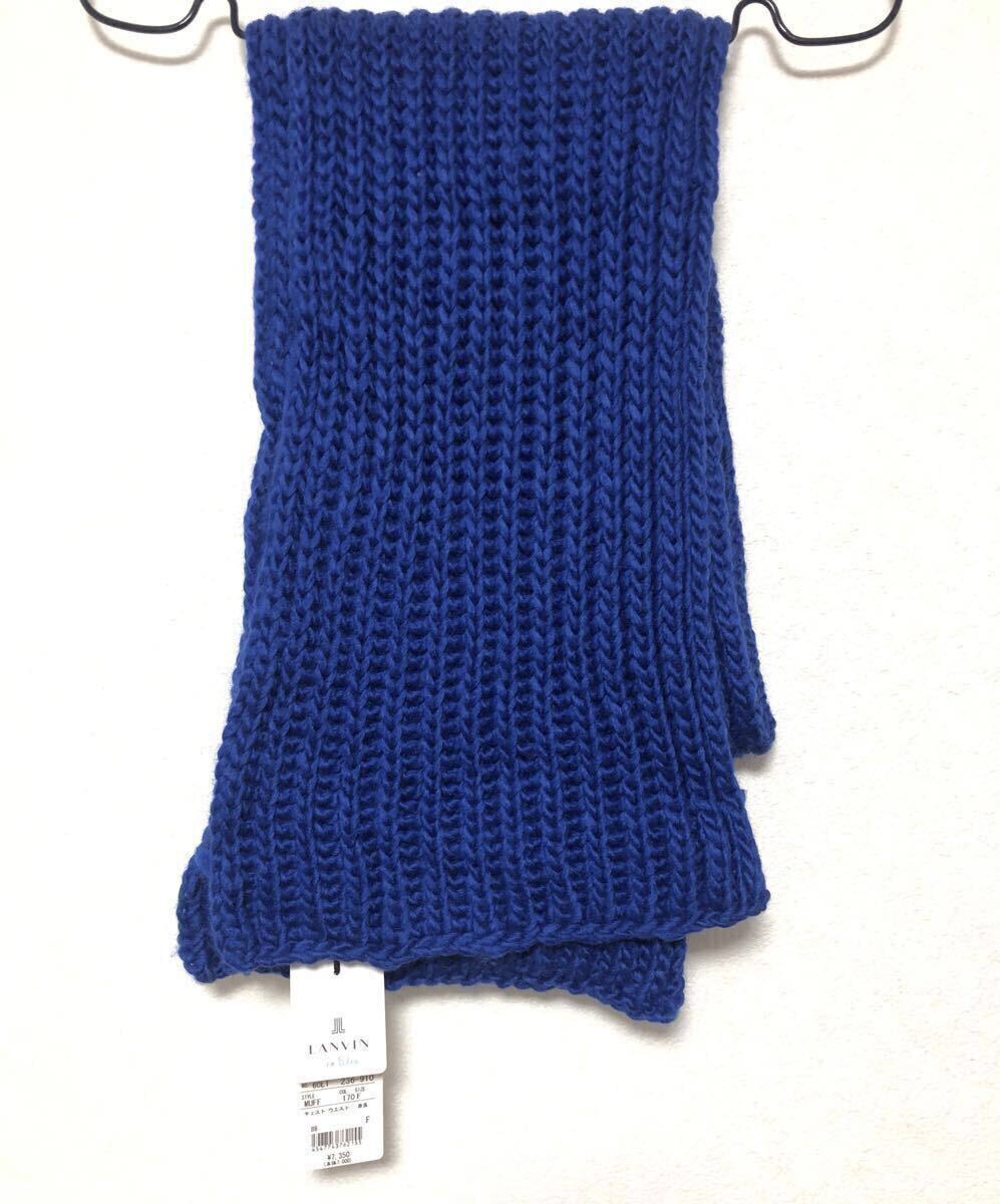 - 未使用 LANVIN en Bleu ランバン オン ブルー ウール アクリル マフラー 青 ニット