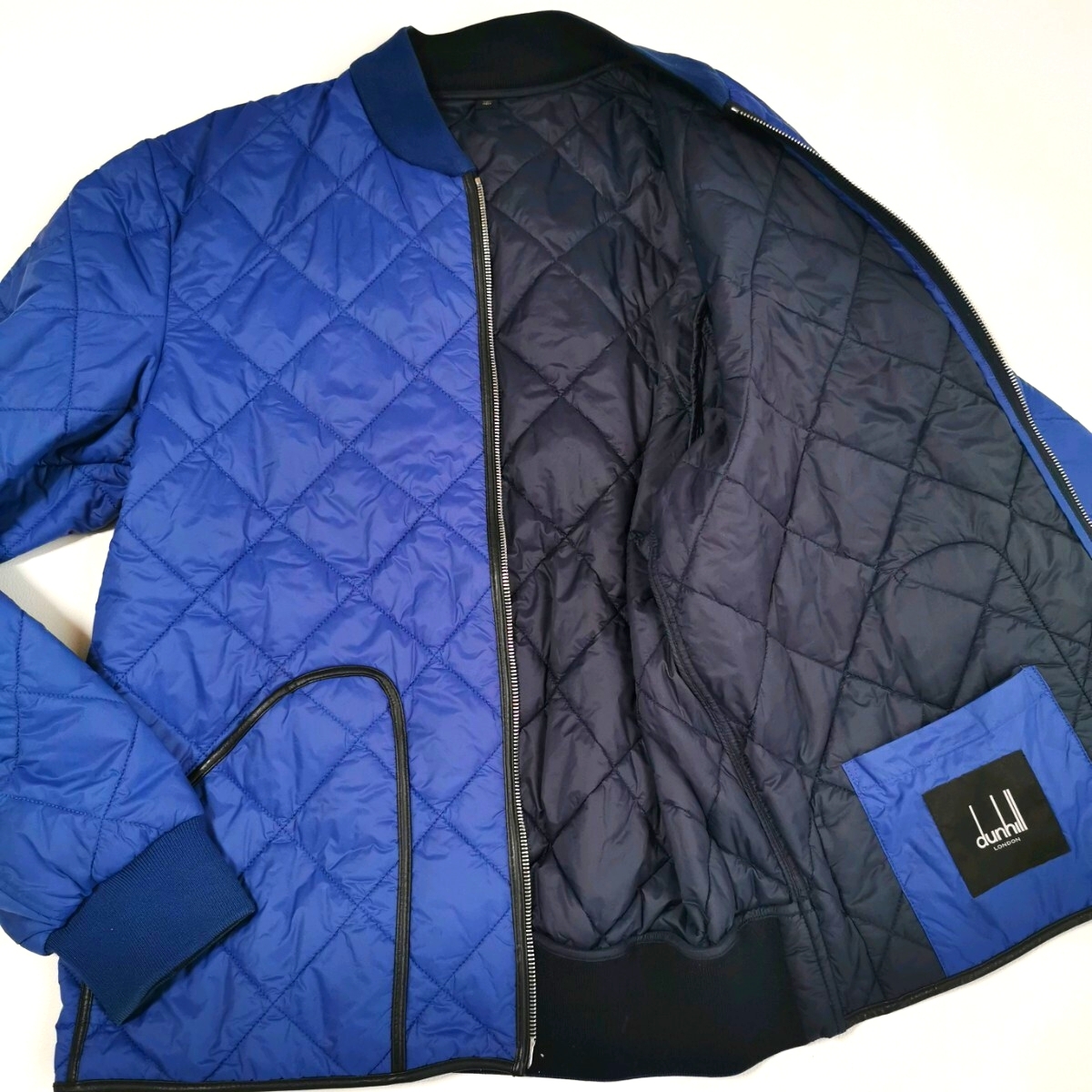 - 美品/L相当●ダンヒル dunhill 近年モデル キルティングジャケット コート 中綿 トリムレザー ブルゾン ダブルジップ ブルー 青 イタリア製