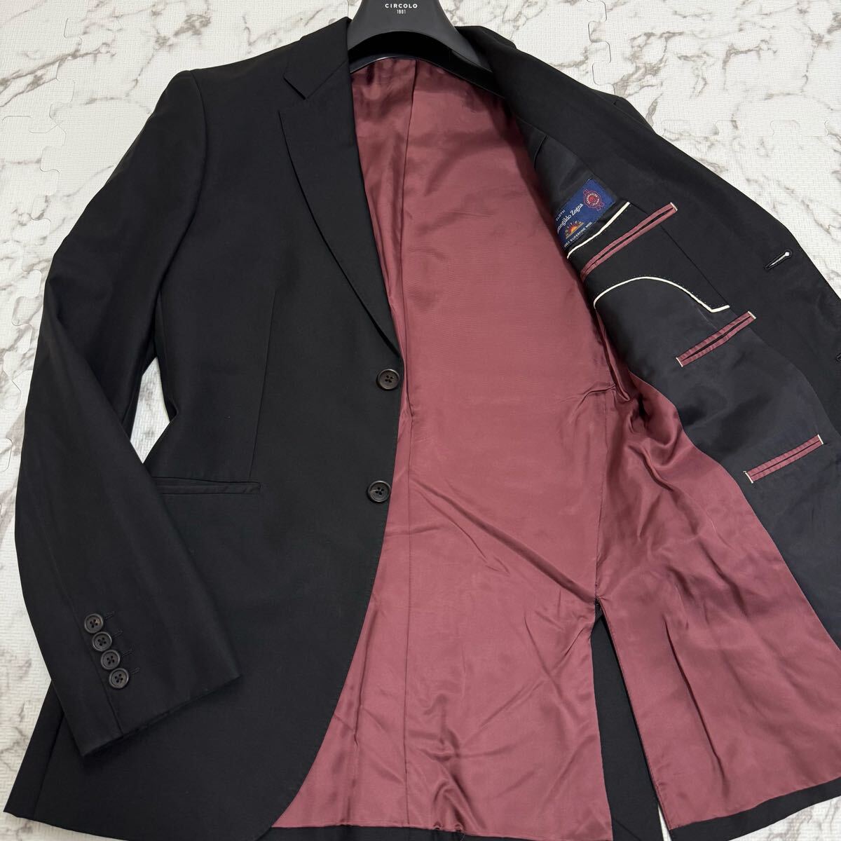 > 極美品 ポールスミス×エルメネジルドゼニア PaulSmith ErmenegildoZegna テーラードジャケット 裏地ボルドーメンズ ブラック 黒 L