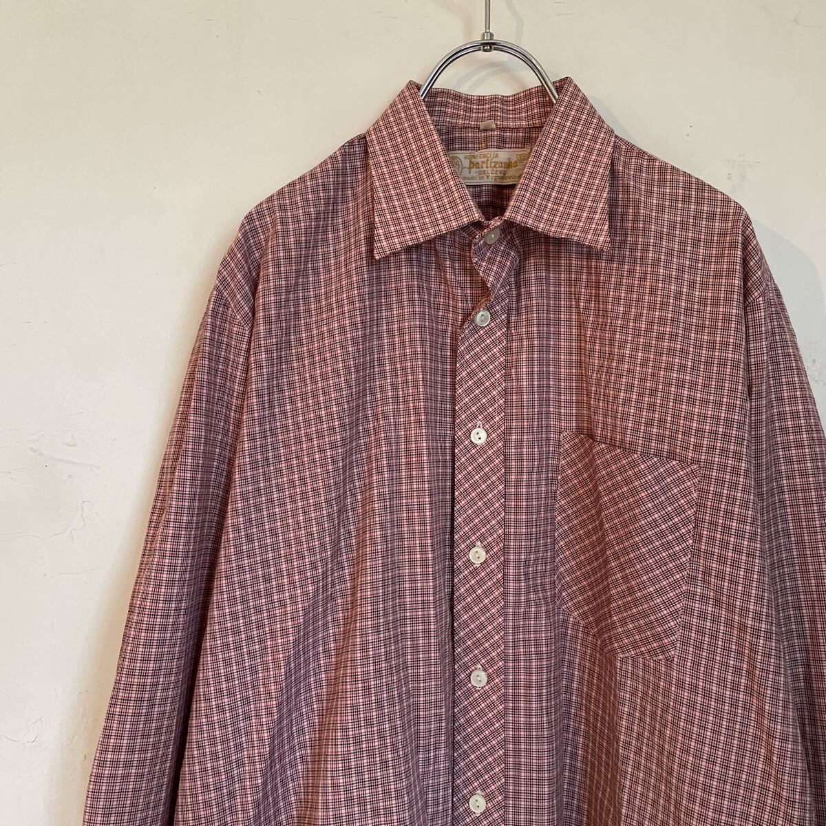 - ビンテージ ユーゴスラビア製 チェック柄 長袖シャツ 5 ヴィンテージ メンズ L ヨーロッパ ユーロ古着 赤系 レッド グランパシャツ