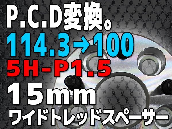 - PCD変換スペーサー PCD114.3→PCD100 5H P1.5 15mm 5穴 シルバー 銀 鍛造 高強度アルミA6061-T6採用 2枚1セット ワイトレ