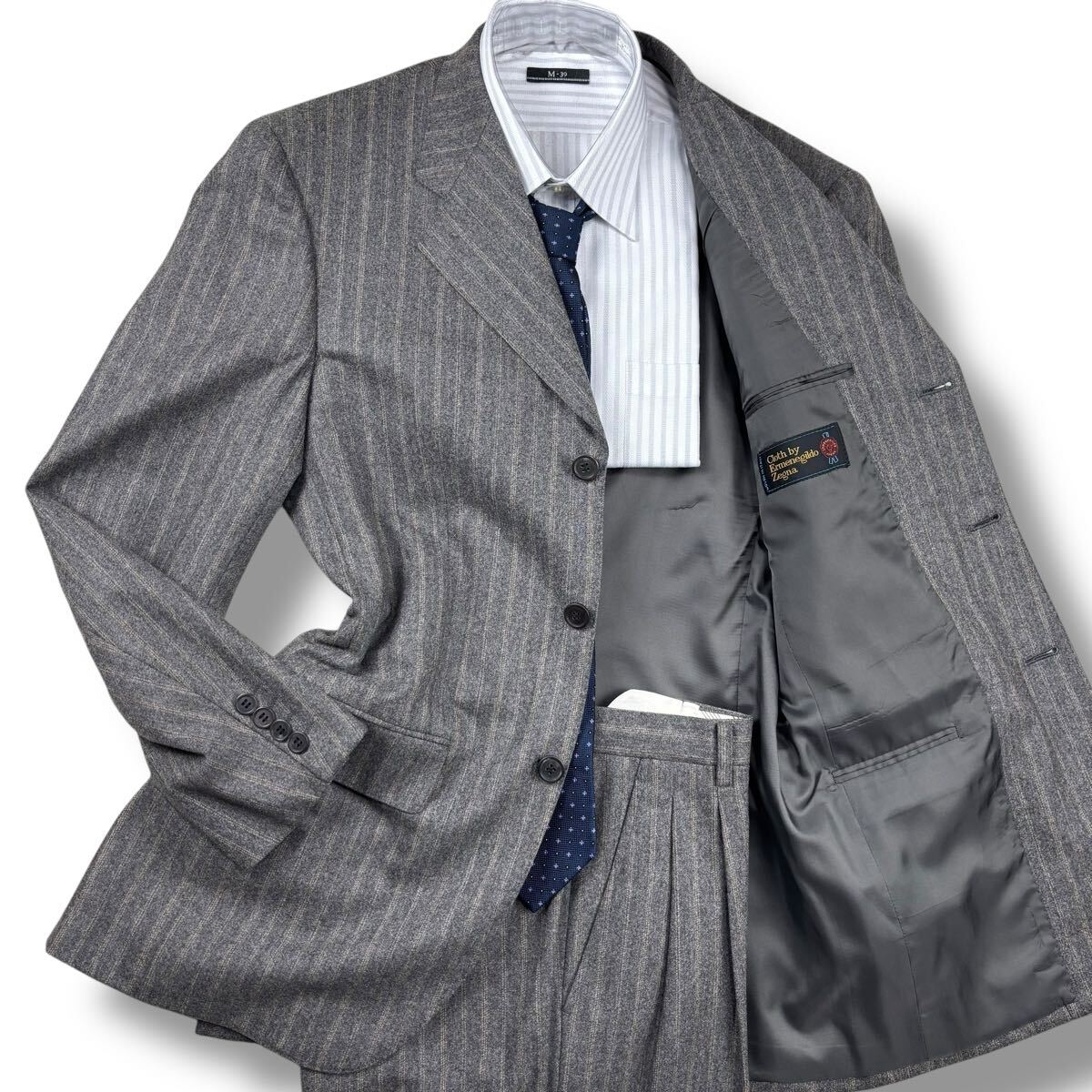 > 1円 美品 L~XL.LL エルメネジルドゼニア ErmenegildoZegna×HenryCottons スーツ セットアップ フランネルウール ストライプ メンズ 46