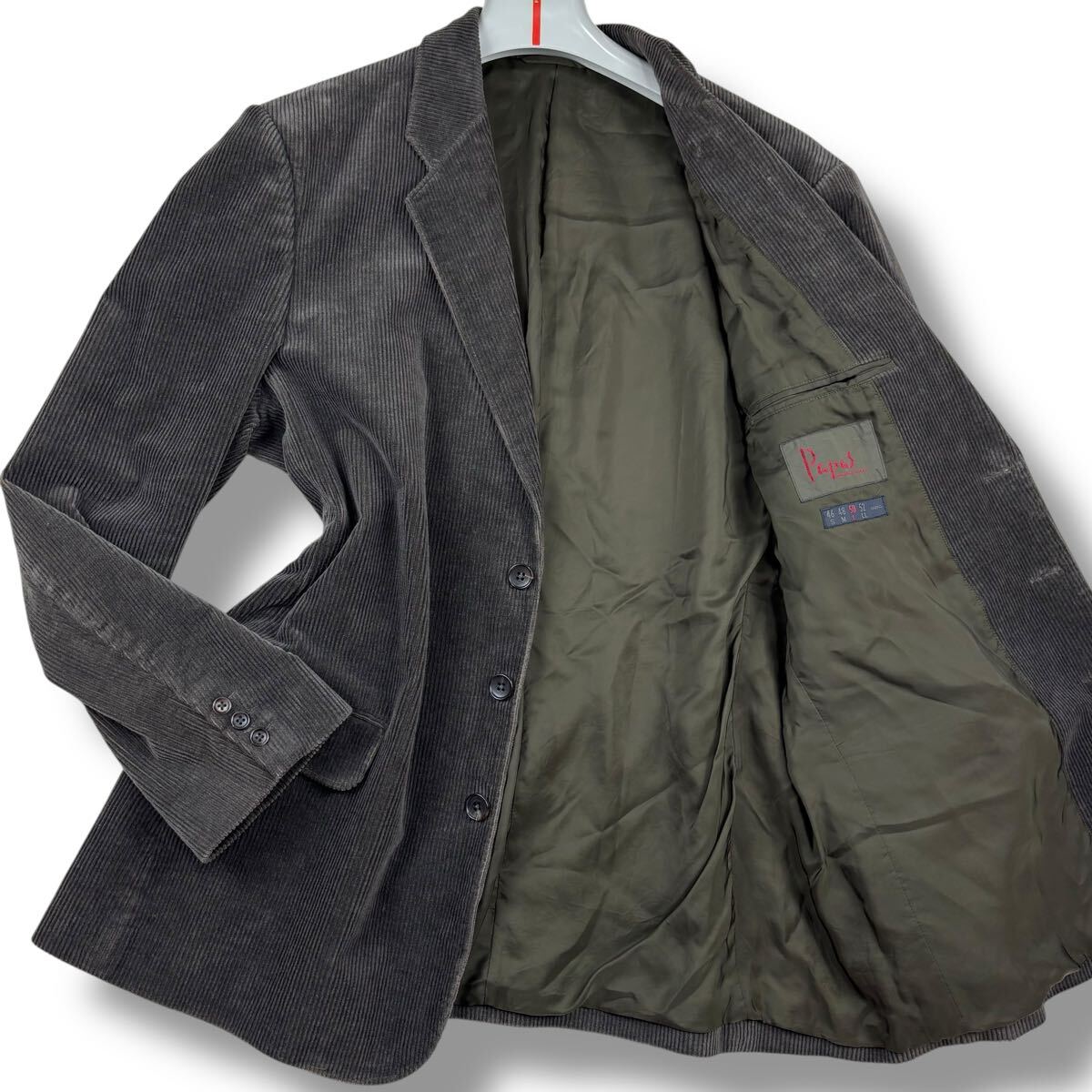 > 1円 美品 XL.LL~XXL.2XL パパス PAPAS テーラードジャケット コーデュロイ 身幅ゆったり 日本製 メンズ ブラウン系 50