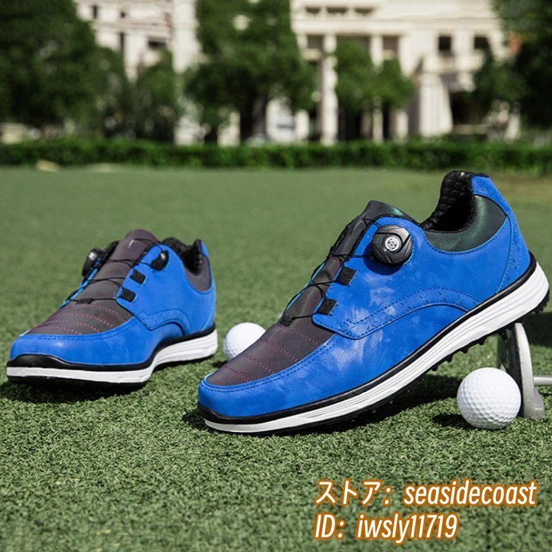 > 特売*高級品 ゴルフシューズ 強いグリップ ソフトスパイク 運動靴 フィット感 超軽量 スポーツシューズ 弾力性 防滑 耐磨 ブルー 25.0cm