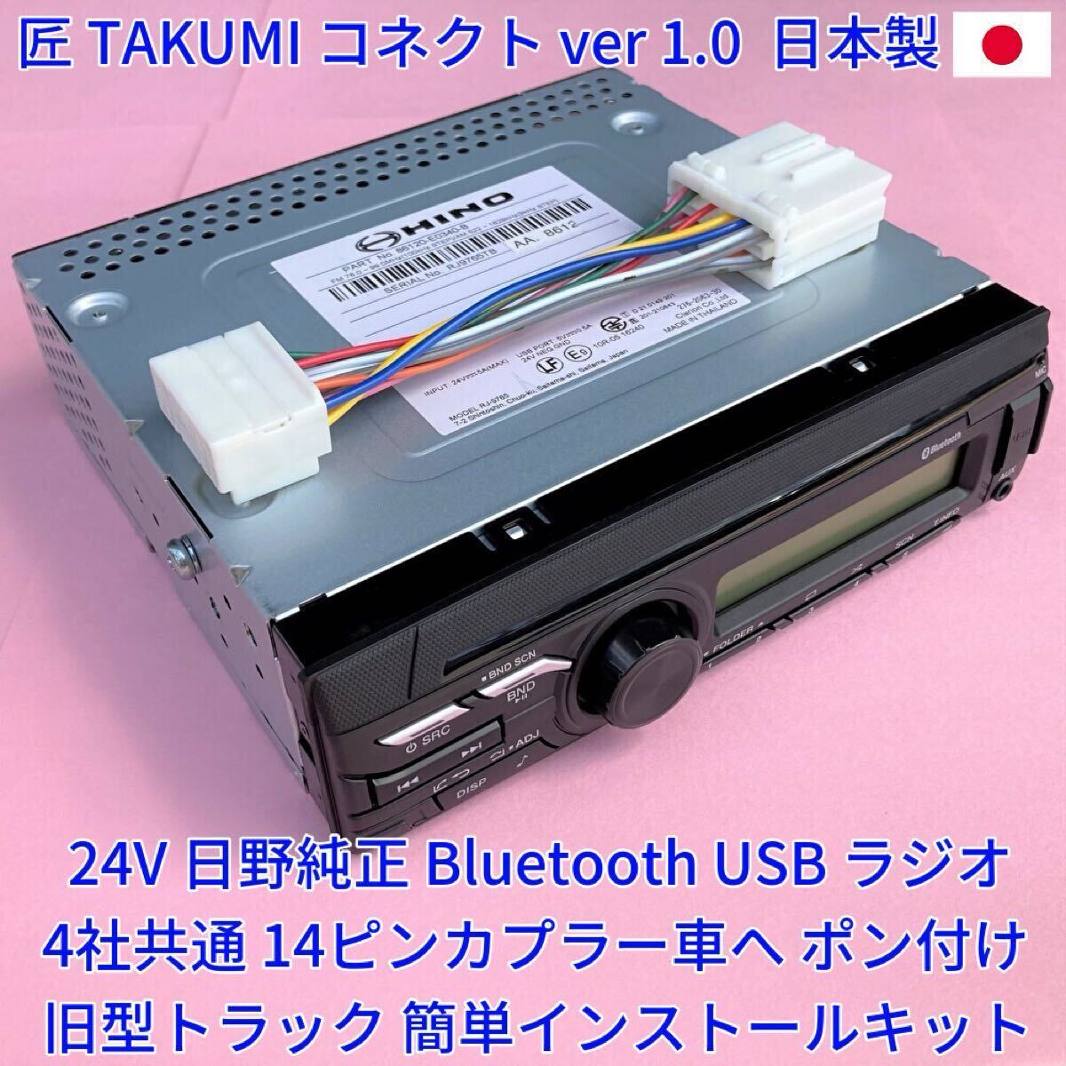 - ■日本製 変換ハーネス付■ 24V 日野純正 ラジオ Bluetooth USB オーディオ 18ピン いすゞ三菱ふそうUD 14ピントラックにポン付 新車外しt