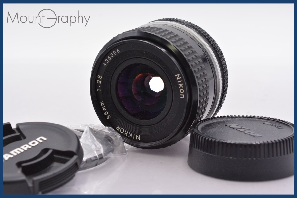 > ★実用美品★ ニコン Nikon NIKKOR 35mm F2.8 Ai 前後キャップ&レンズフィルター付 ★完動★同梱可 #mj4923