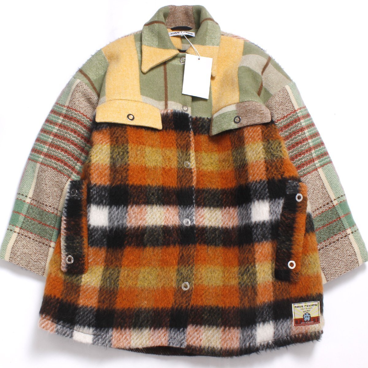 > 【新品】Rave Review VINTAGE WOOL BLANKET パッチワークコート size36 レイブレビュー 1点物 ヴィンテージブランケット