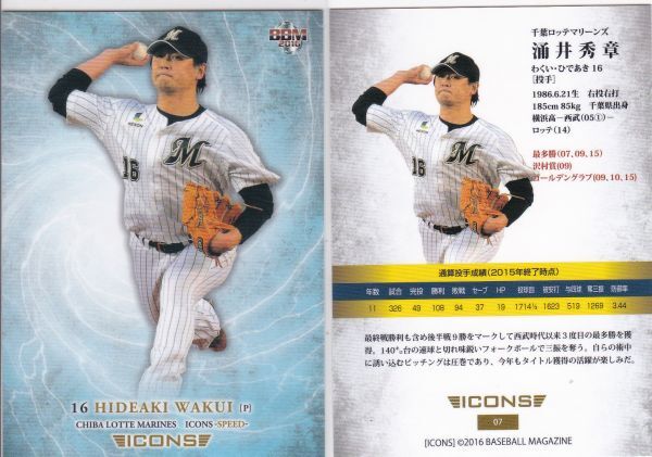 > ●2016BBM/ICONS 【涌井 秀章】 BASEBALL CARD No.07:ロッテ R2