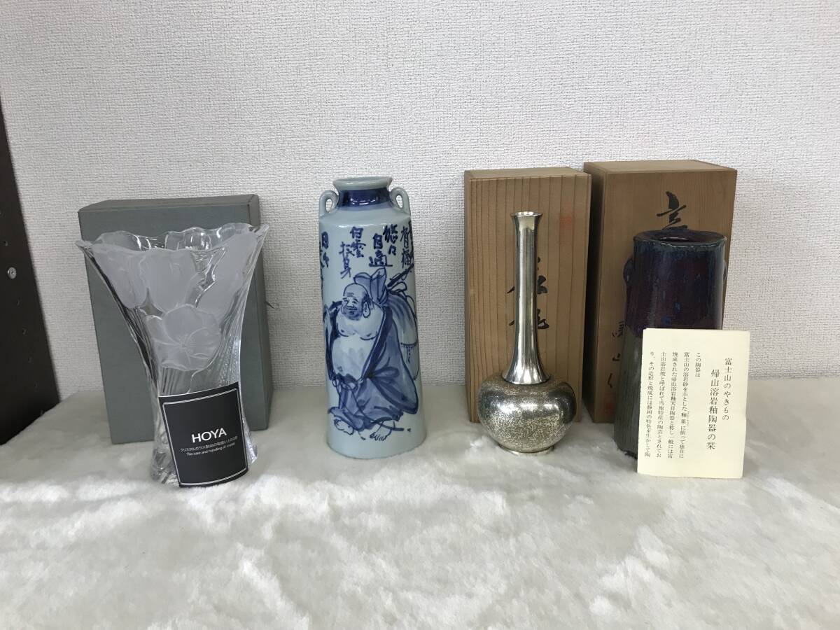 - 2101 帰山溶岩紬陶器 HOYAクリスタル 一輪挿し 花瓶 花器 陶芸品 骨董品 セット まとめて アンティーク コレクション 他