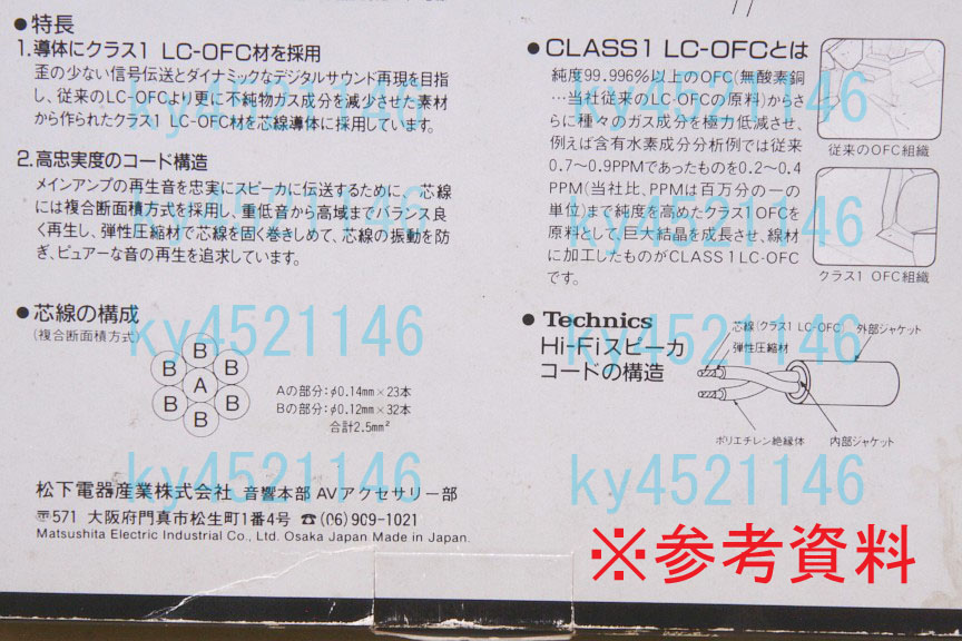 > ///Technics/テクニクス RP-CA8300S スピーカーケーブル CLASS1 LC-OFC HI-FI SPEAKER CORD 3m×2本 ///
