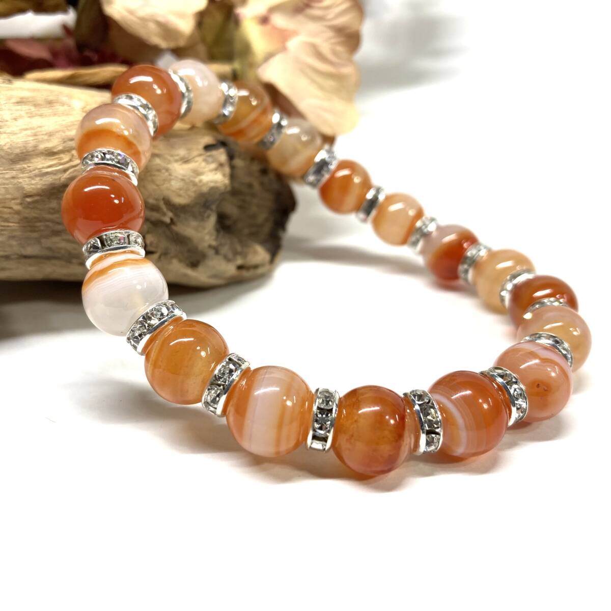 > カーネリアン・サードニクス(サードオニキス) パワーストーン ブレスレット 10mm 天然石ブレス (シルバー) メンズ・レディース 男性 ☆