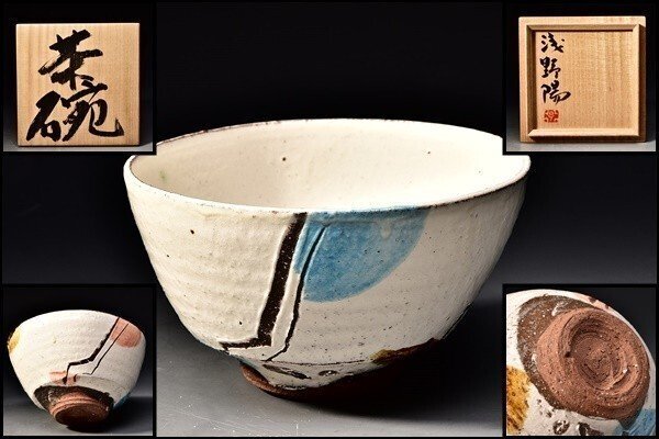 > U07128 東京芸大 名誉教授 浅野陽 色絵 茶碗 茶道具 共箱 師: 人間国宝 富本憲吉 加藤土師萌 /ET