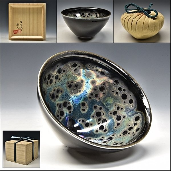 - U8951 大吉窯 大江高元 天目 窯変 曜変 曜変天目 茶碗 茶器 共箱