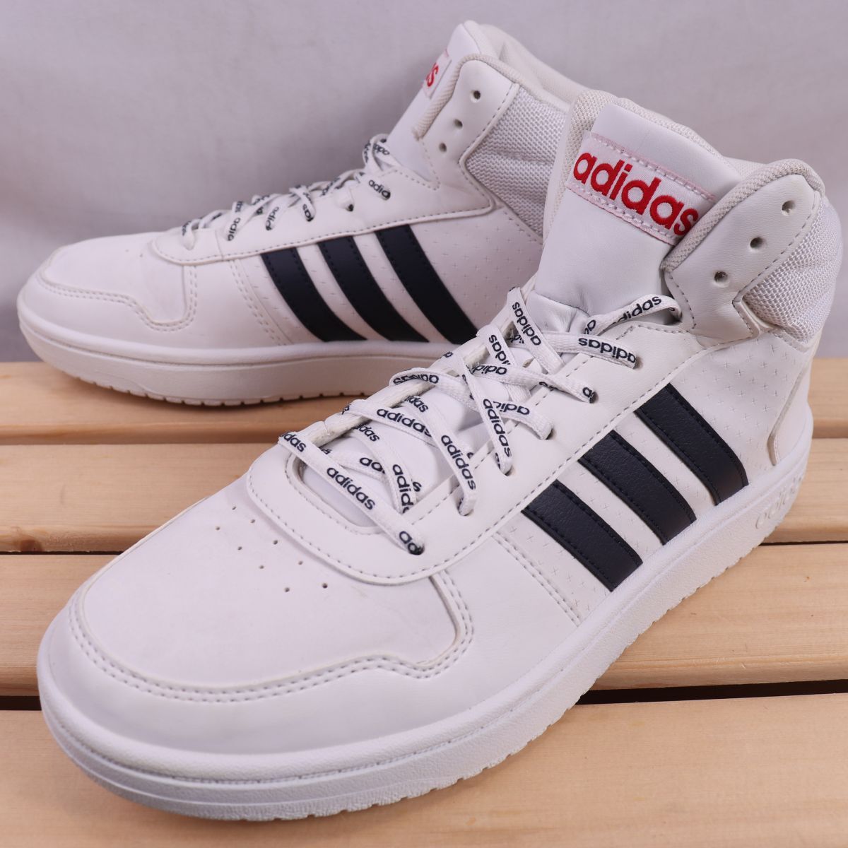 - z2790 アディダス フープス 2.0 ミッド US9 1/2 27.5cm/白 ホワイト 黒 赤 adidas Casual Hoops 2.0 Mid メンズ スニーカー 中古
