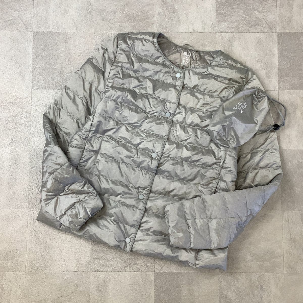 > 良品 ユニクロ UNIQLO ウルトラライトダウン ダウンジャケット レディース Mサイズ グレー スナップボタン golf ゴルフウェア 軽量ダウン