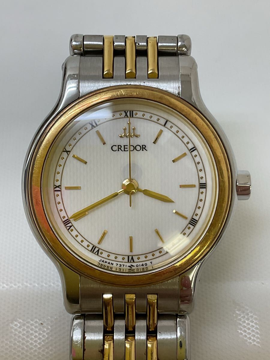 > 【 M-3234】 SEIKO CREDOR セイコー クレドール 腕時計 7371-0090 SS 18KTコンビ ラウンド クォーツ QZ コマ取れあり 不動