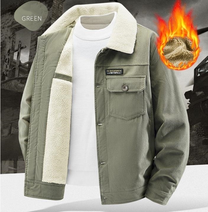 > 裏フリース ジャンパー ブルゾン コーデュロイ 新品・メンズ 裏ボア ワークジャケット アウター コート【2266A】緑色 3XL