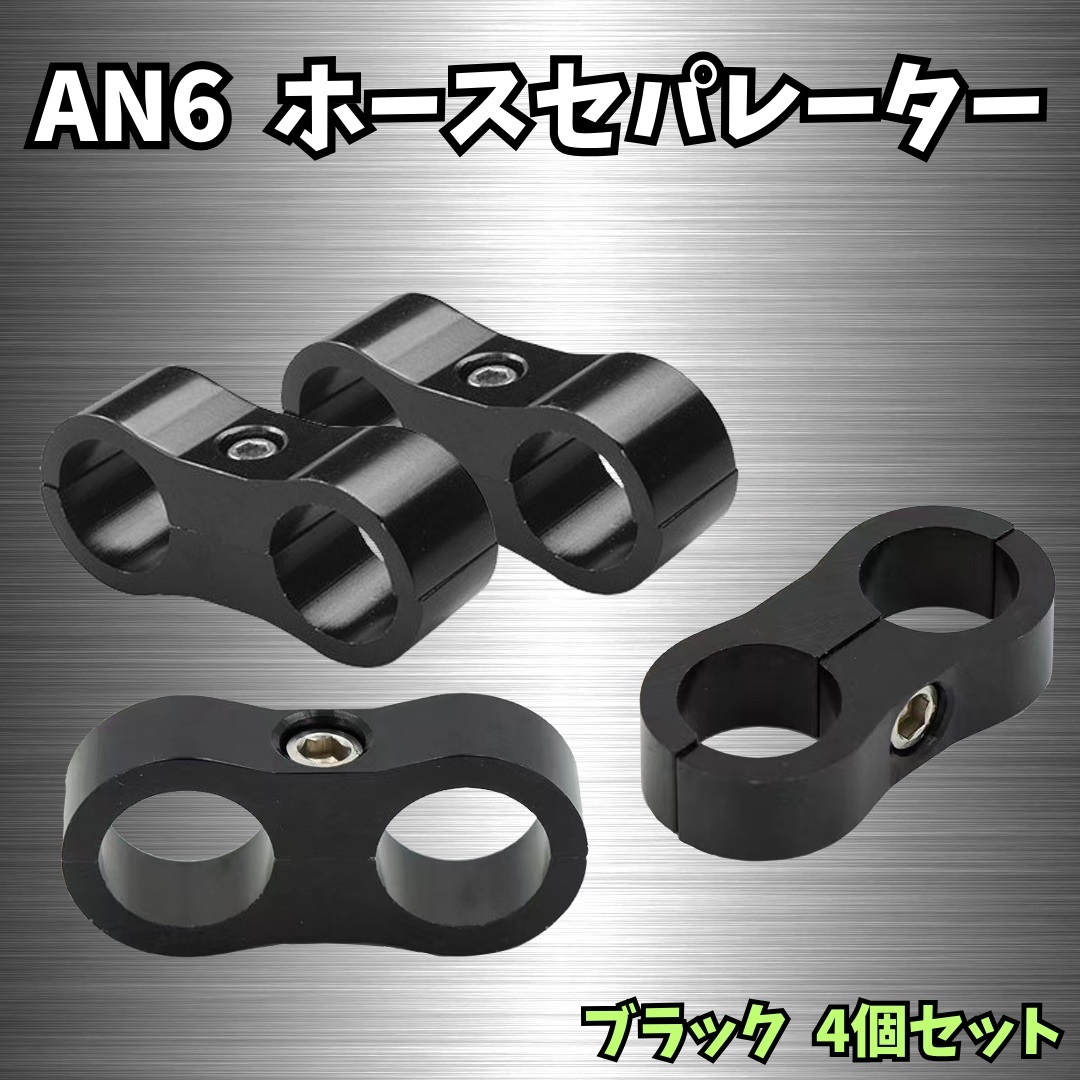 > AN6 ホース セパレーター 4個セット クランプ チュービング フューエル オイルホース 燃料 ブレーキ ライン アルミ 二輪 配線 ブラック