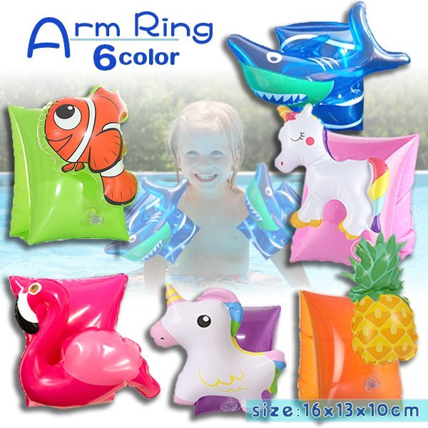 - 【ネコポス便送料無料】アームリング 2個セット(両腕) キッズ 腕浮き輪 フラミンゴ サメ ユニコーン クマノミ 浮き輪 浮輪安全 腕用 幼児