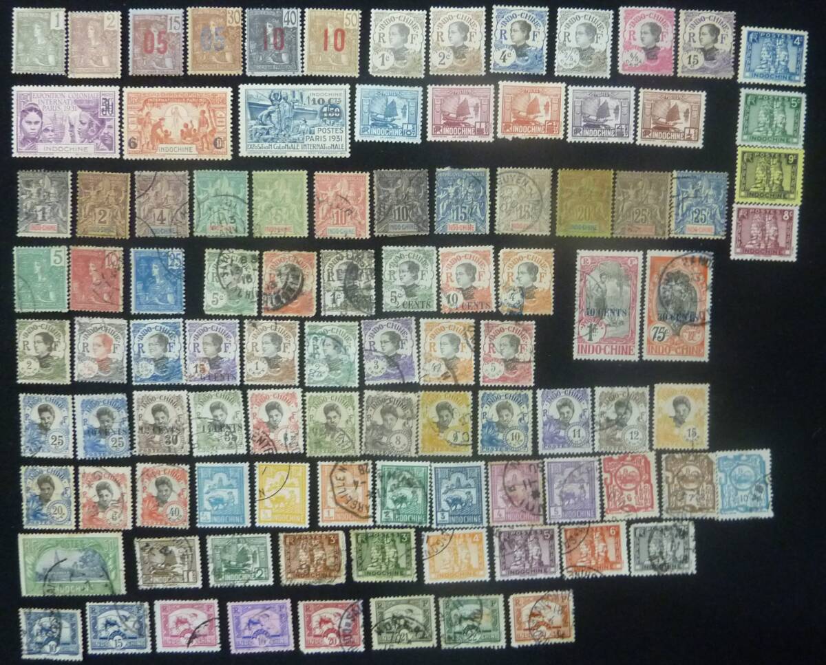 > 外国 切手 インドシナ フランス領インドシナ 「INDOCHINE FRANCAISE」「INDOCHINE」 などの表記の切手 消印有70枚 未使用24枚 です。