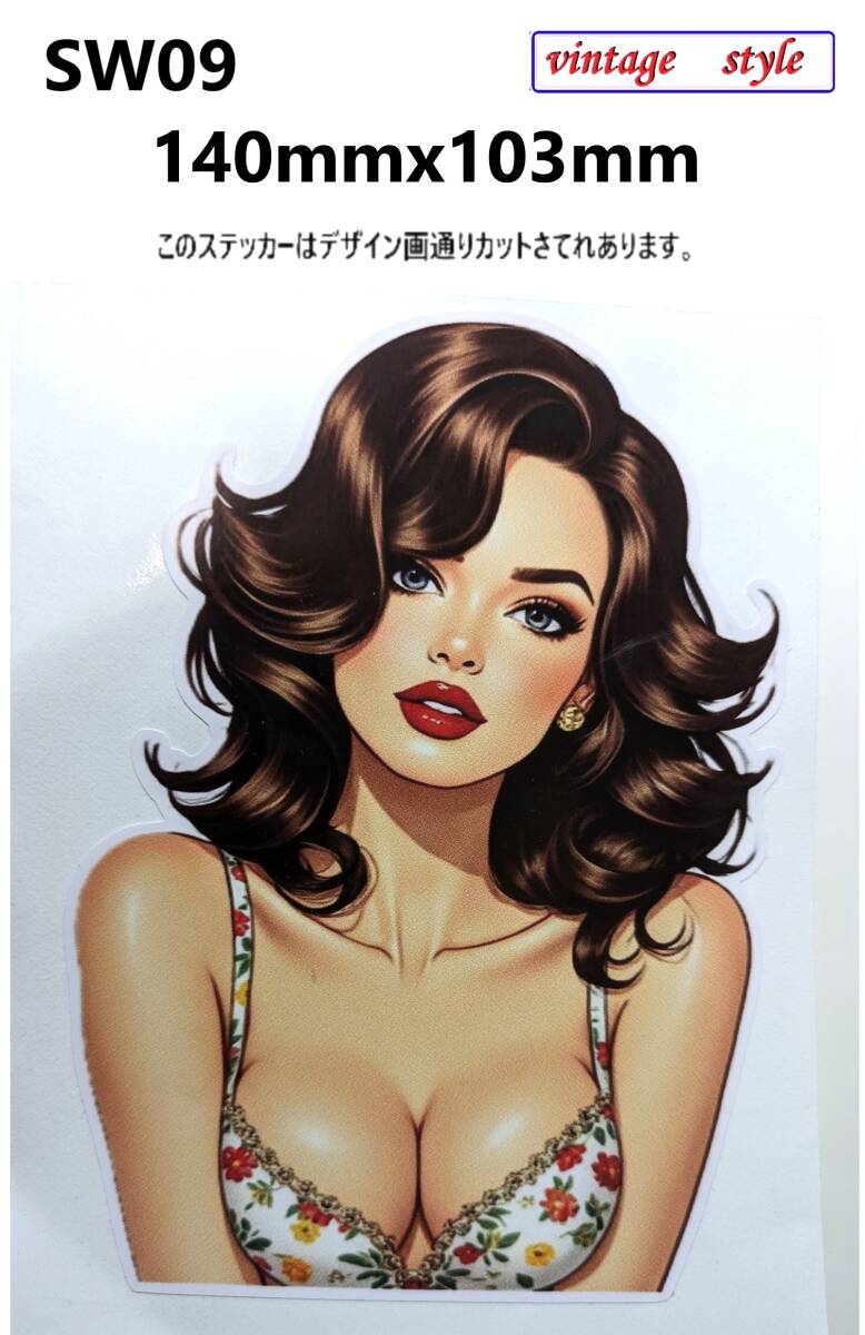 - SW09-06 特価~15%OFF レトロ 美人 セクシー&クール 顔上半身 ヴィンテージスタイル ピンナップガール セクシーステッカー ギター