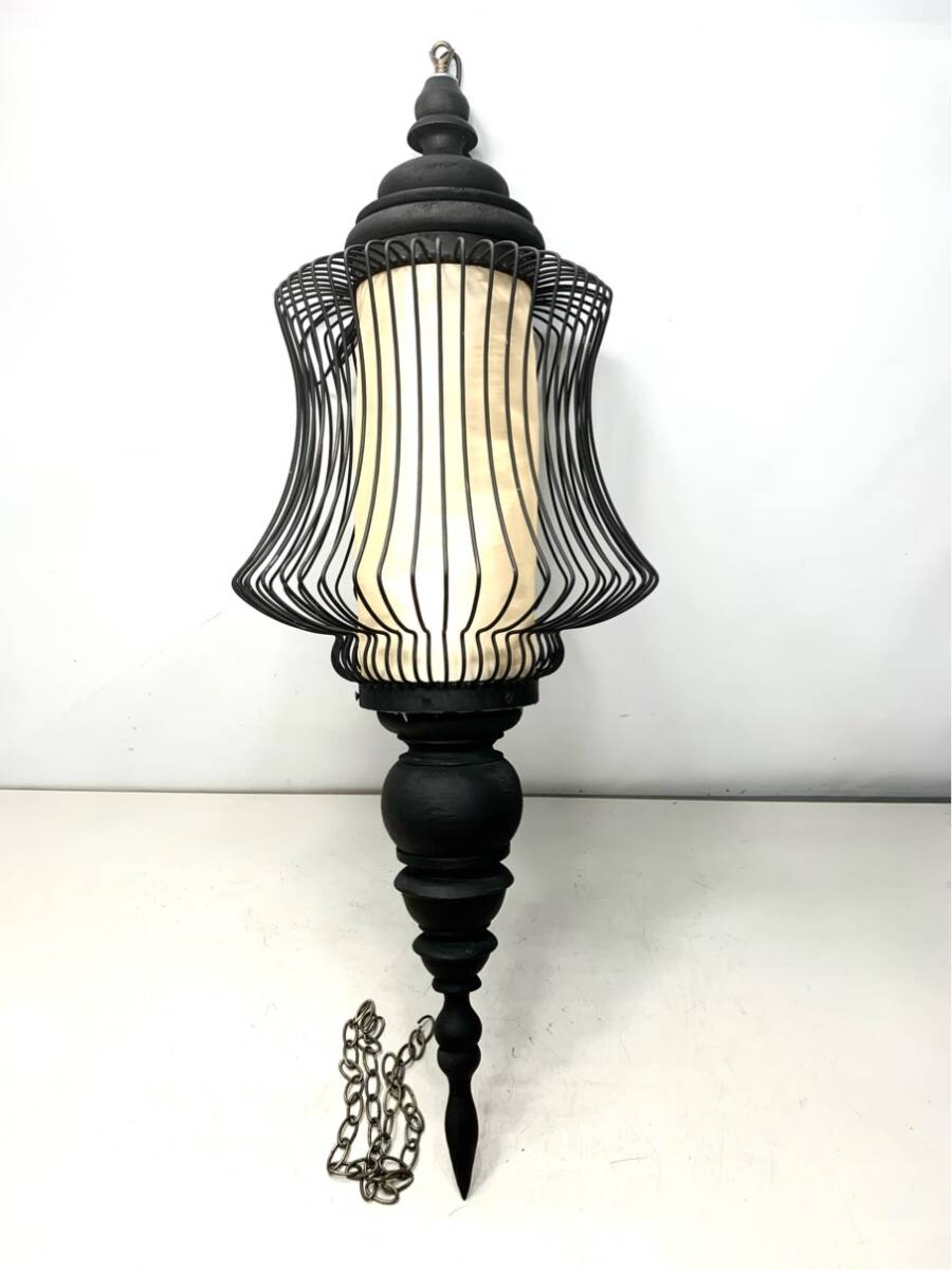 - 貴重 ペンダントランプ 鎖付 特大 ワイヤーケージシェード アート 美術品 ライト A9683B20