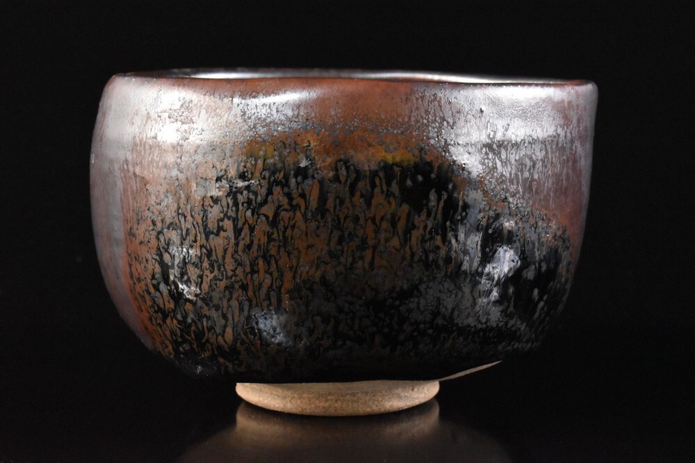 - 【雲】某名家収蔵品 美濃焼 黒釉 抹茶碗 在銘 古美術品(茶道具) F8025