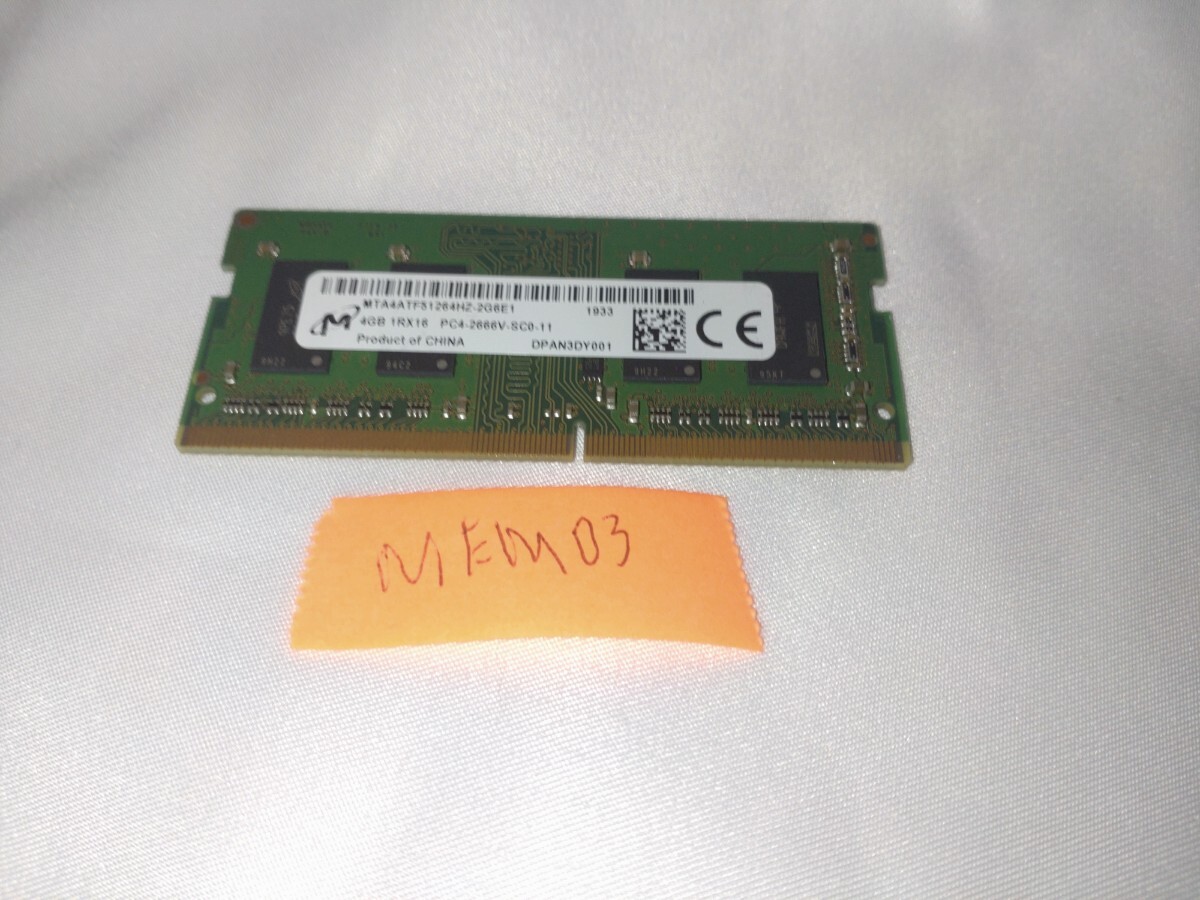 - DDR4 メモリ ノートPC PC4-2666 4gb ノートPC用メモリ MICRON ノートパソコン用メモリ mem03