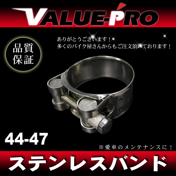 - 新品 ステンレス マフラーバンド 44-47mm / 汎用 サイレンサーバンド マフラークランプ ホースバンド