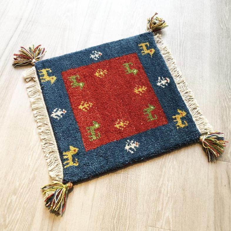 - 高級手結び絨毯 GABBEH ギャッベ 40×40cm ウール 玄関マット おしゃれ カーペット 絨毯 ハンドノット ギャベ ラグ 段通 キリム 42