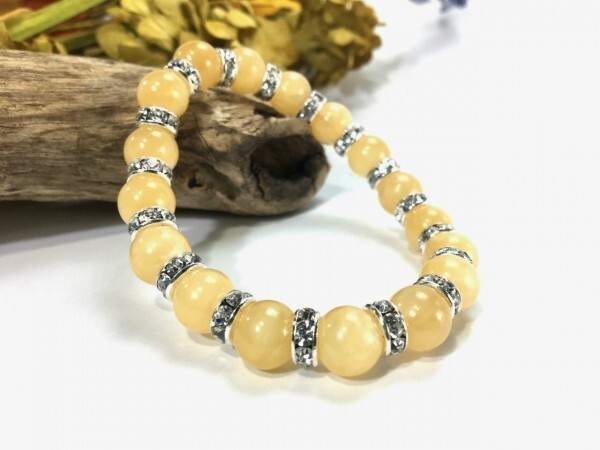 - アラゴナイト パワーストーン ブレスレット 天然石ブレス 10mm メンズ・レディース (ロンデル:シルバー) 開運 浄化 数珠ブレス♪
