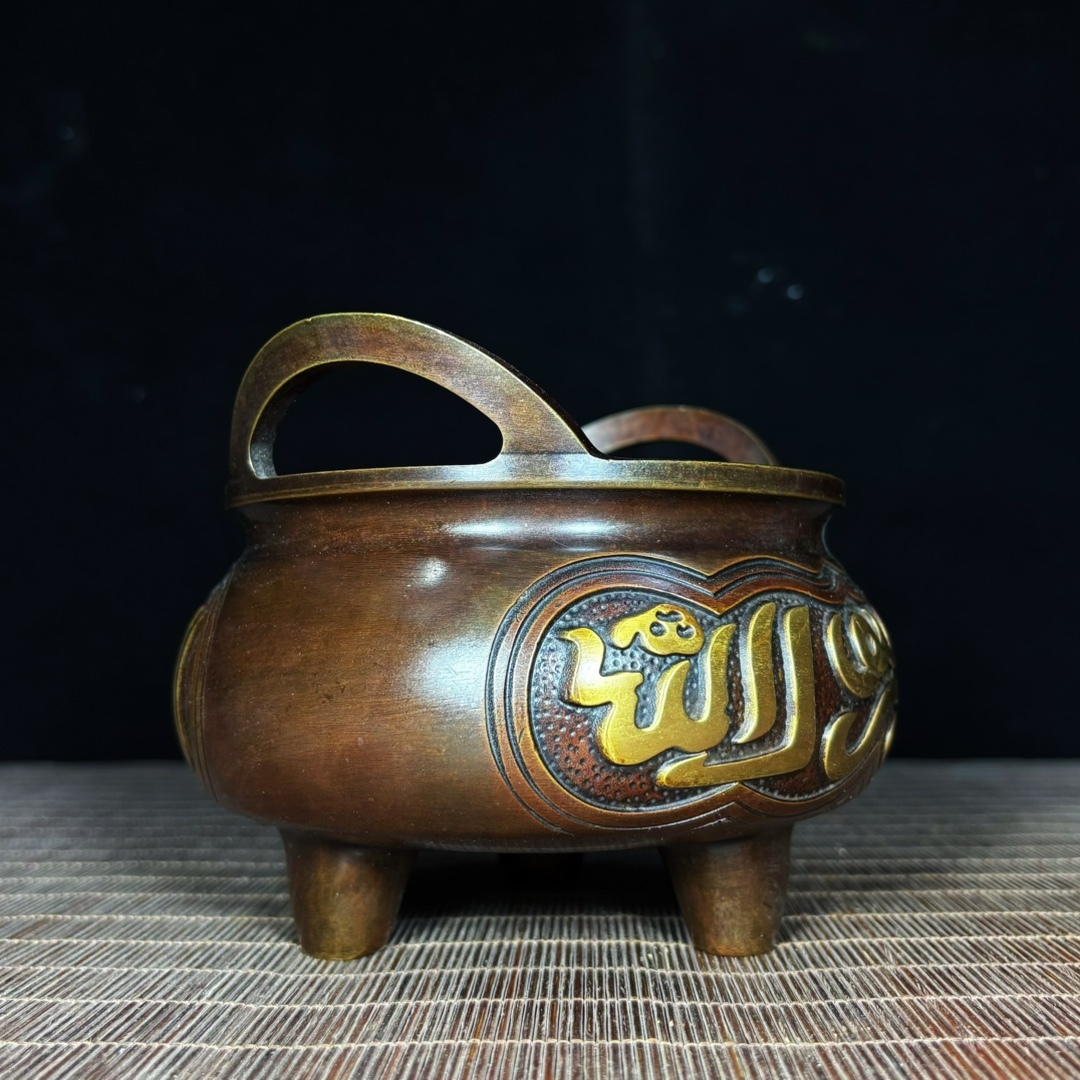 - 館蔵 古銅彫 塗金 三足 香炉 古董品 時代物 賞物 貴重 稀少珍品 中国古美術 古美味 蔵出
