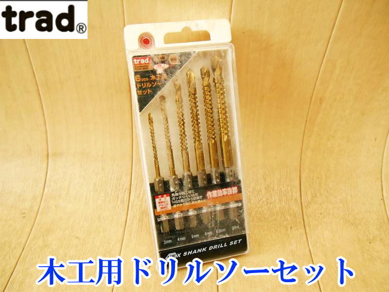 > 〇 trad 木工用ドリルソーセット TCD-606 6pcs 穴あけ 3.0/4.0/5.0/6.0/6.5/8.0mm 六角軸 バリ取り 拡大 木材 硬質建材 アルミ板 薄鉄板