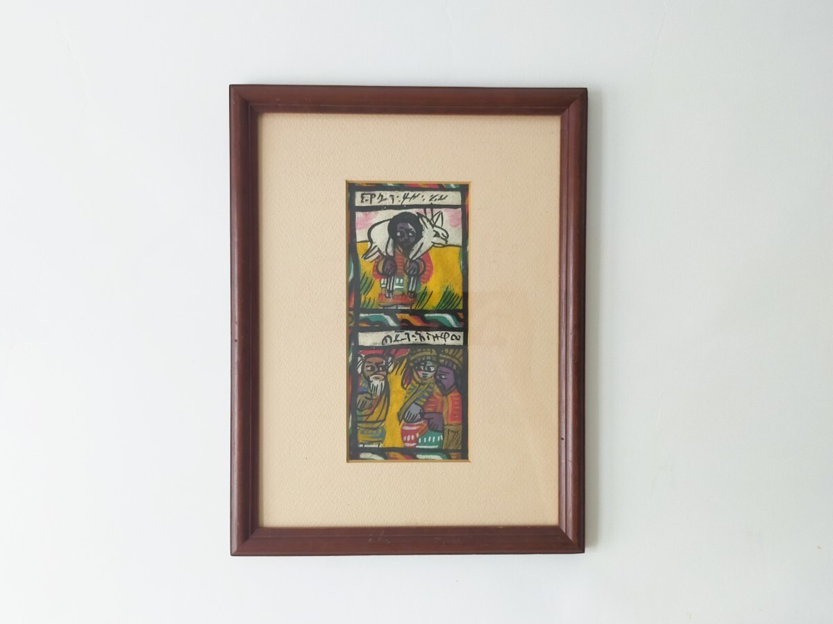 > キリスト教美術 肉筆エチオピア宗教画 額装品 トラディショナルアート 絵画 ヴィンテージ 作者不詳 エスニック 骨董 古美術 宗教美術手描き
