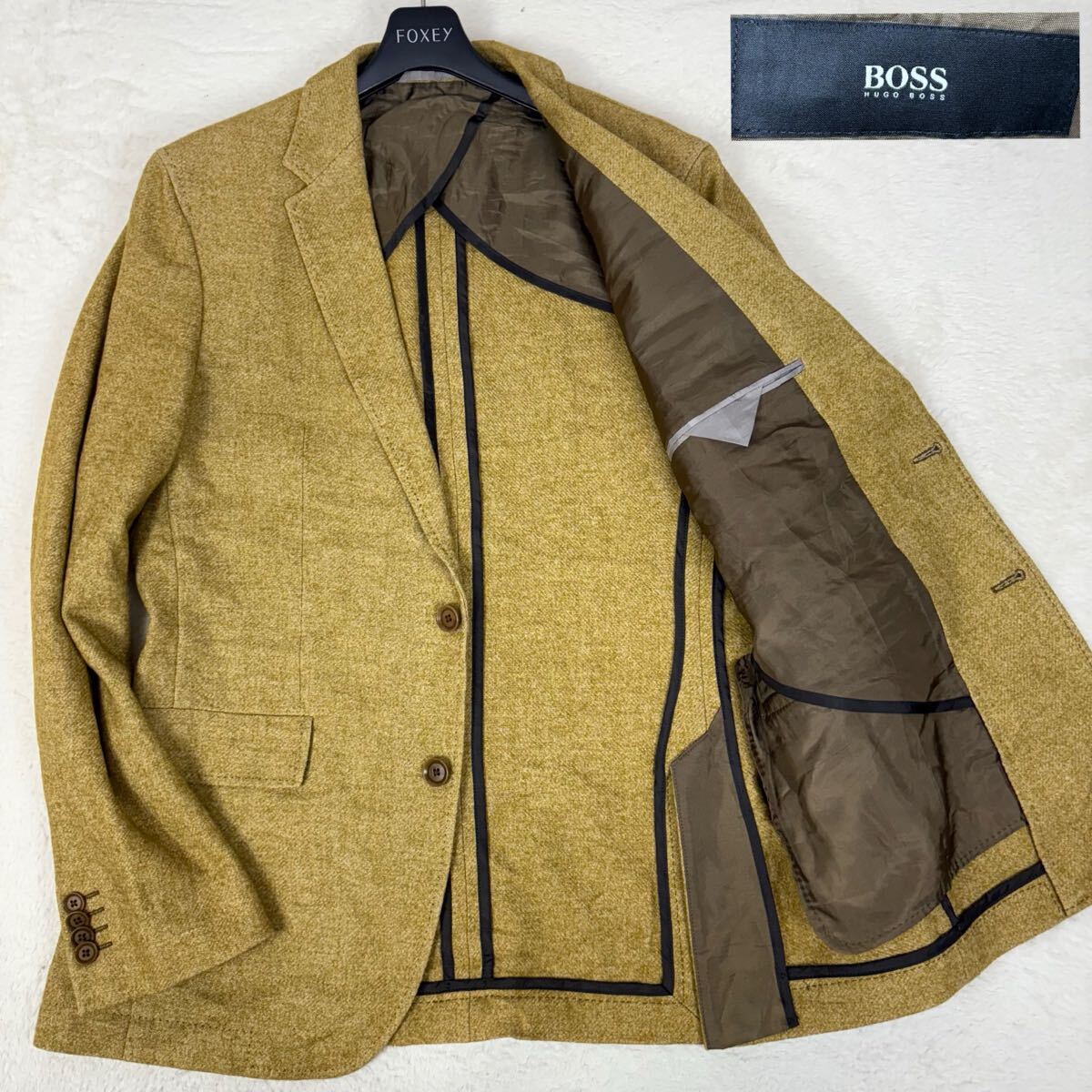 > 【Lサイズ 希少カラー】HUGO BOSS ヒューゴボス テーラードジャケット シングル 2B パイピング イエロー 黄 ビジネス スーツ SIZE48 秋冬