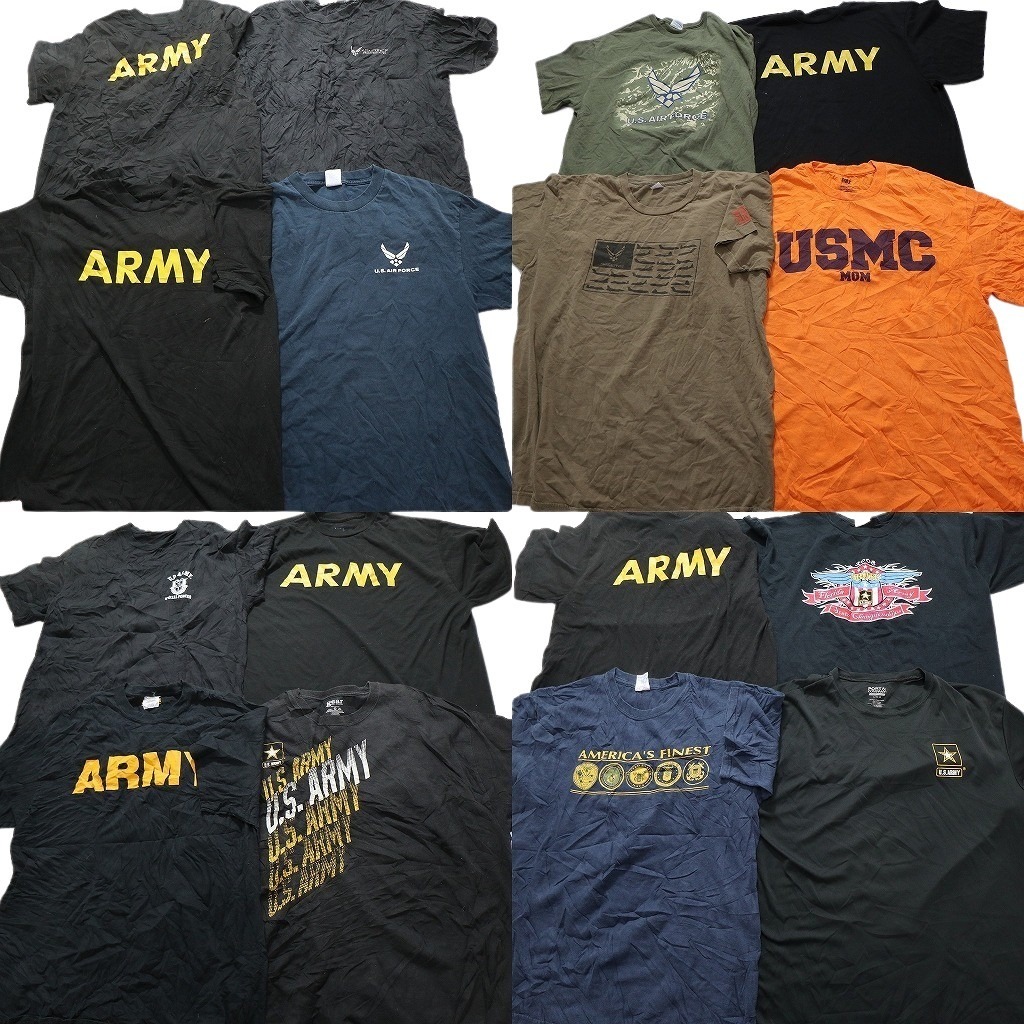 - 古着卸 まとめ売り ミリタリー 半袖Tシャツ 16枚セット (メンズ L /XL ) ARMY USMC エアフォース ワンポイント NC3781 1円スタート