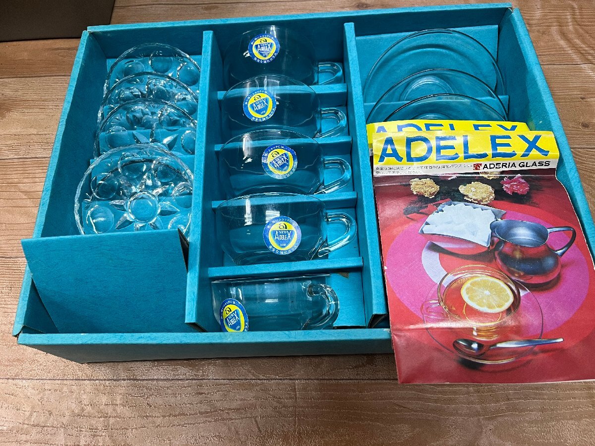 > 未使用品 昭和レトロ アデリア アデレックス 強化ガラス コーヒーカップセット 5客 小皿付