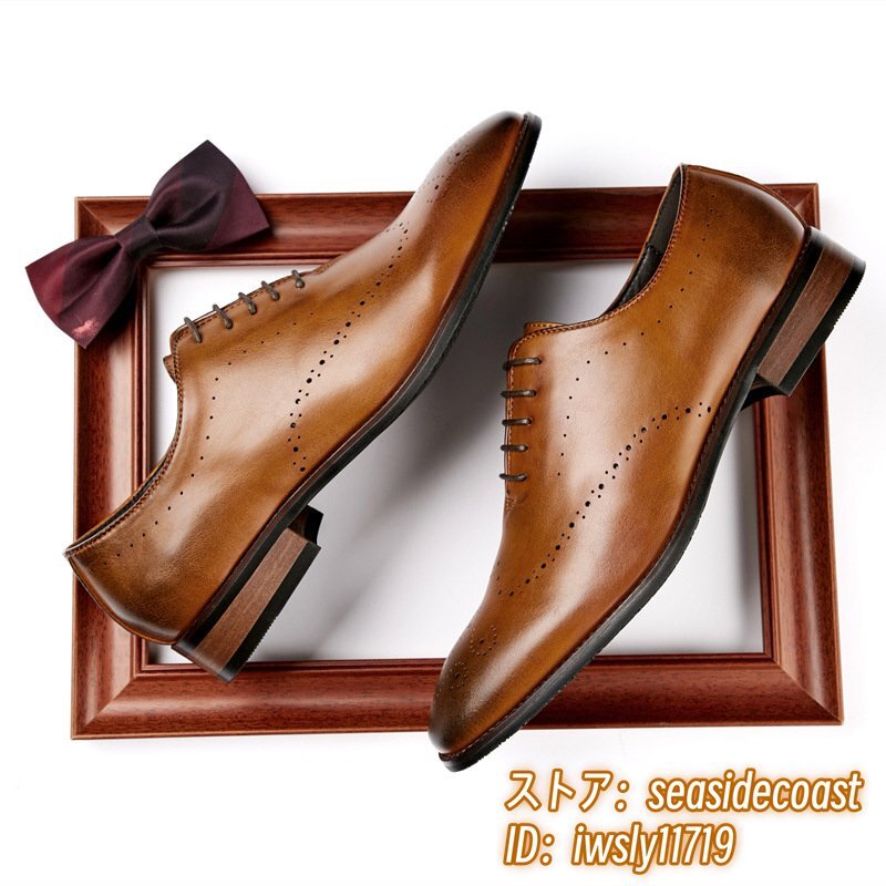 > 限定セール*新品 ビジネスシューズ 高級品 本革 メンズ レザーシューズ ヴィンテージ 職人手作り 紳士靴 上質 フォーマル ブラウン 26.0cm