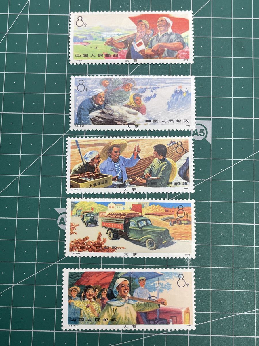 - 【未使用】中国切手 T5 大寨の紅旗 ヒンジ跡なし消印なし コレクター放出品 !