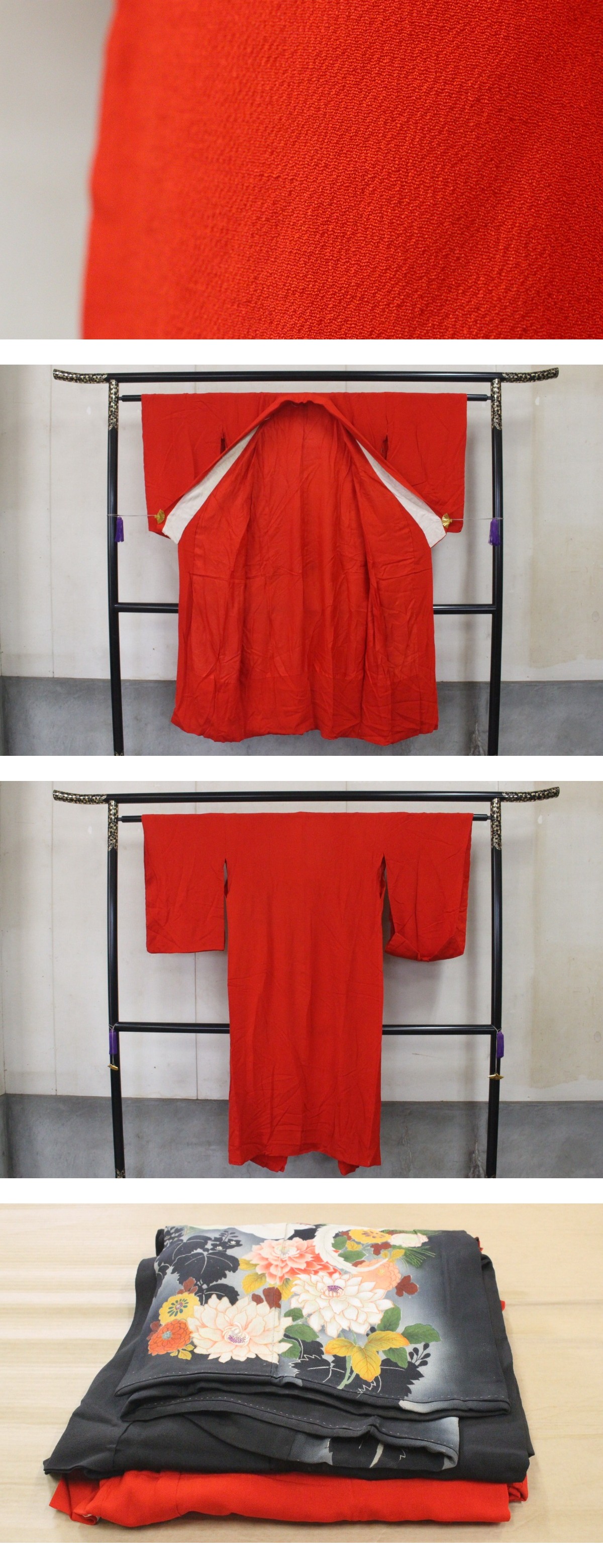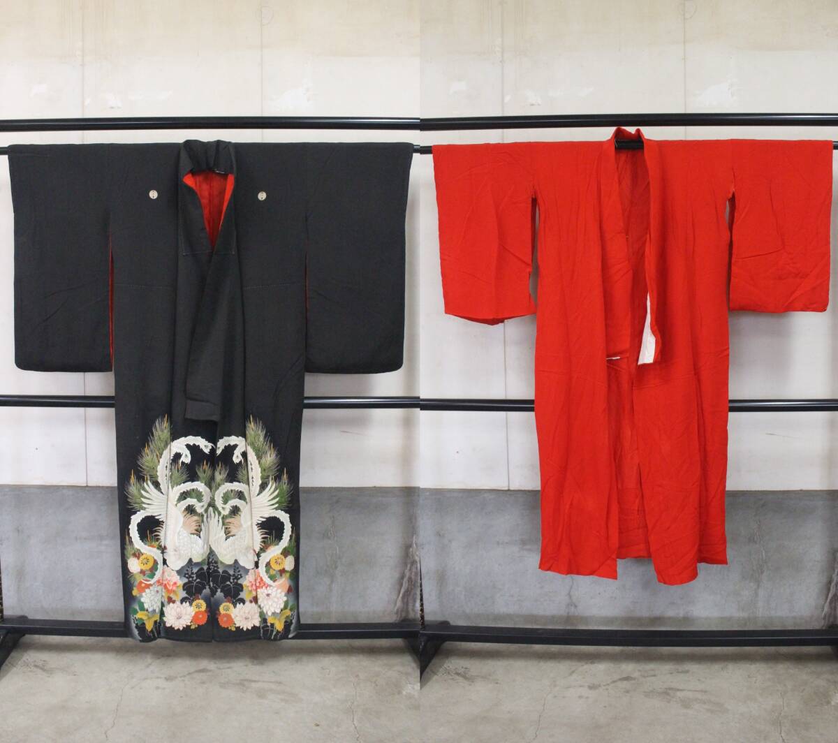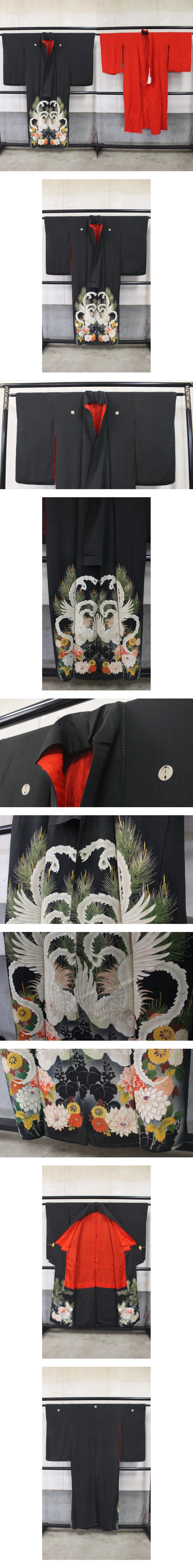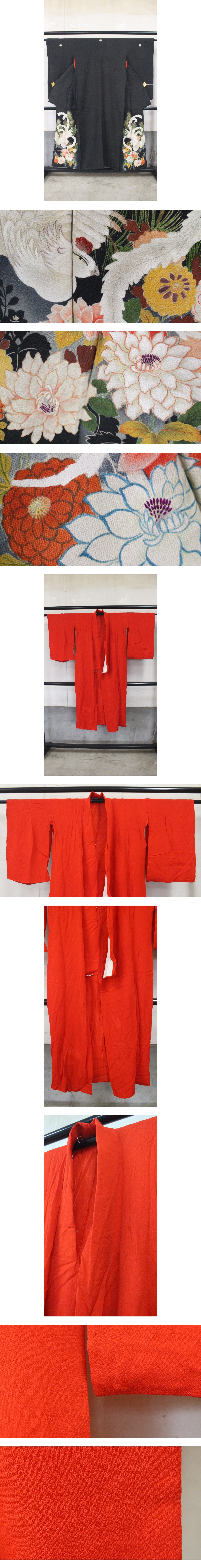 - 紋付 錦紗 2点セット 時代物 日本着物和服 古布アンティーク生地 ツ13