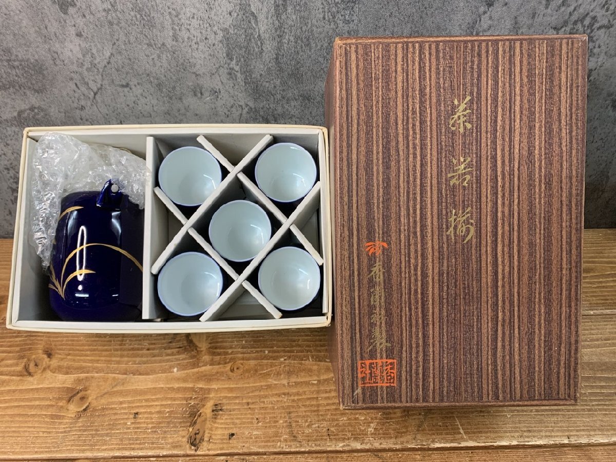 - 【YB-2601】香蘭社 高級湯呑 蘭紋様 瑠璃色 急須 1個 湯飲み茶碗 5個 セット 茶托付き 湯茶碗 湯み 湯飲み 茶器 老舗ブランド【千円市場】