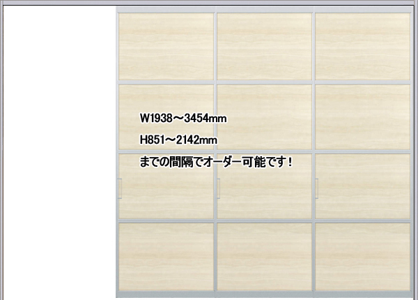 | 商品サイズ | W1938~3454mm H851~2142mmまでの間で自由にオーダーして手配可能です。 |