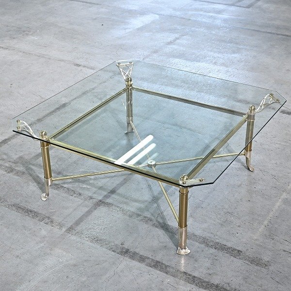 > ★アンティーク調 ガラステーブル 真鍮 クローム脚 スクエア ロー コーヒー ヴィンテージ リビング ディスプレイ_IDC大塚家具 サァラ麻布
