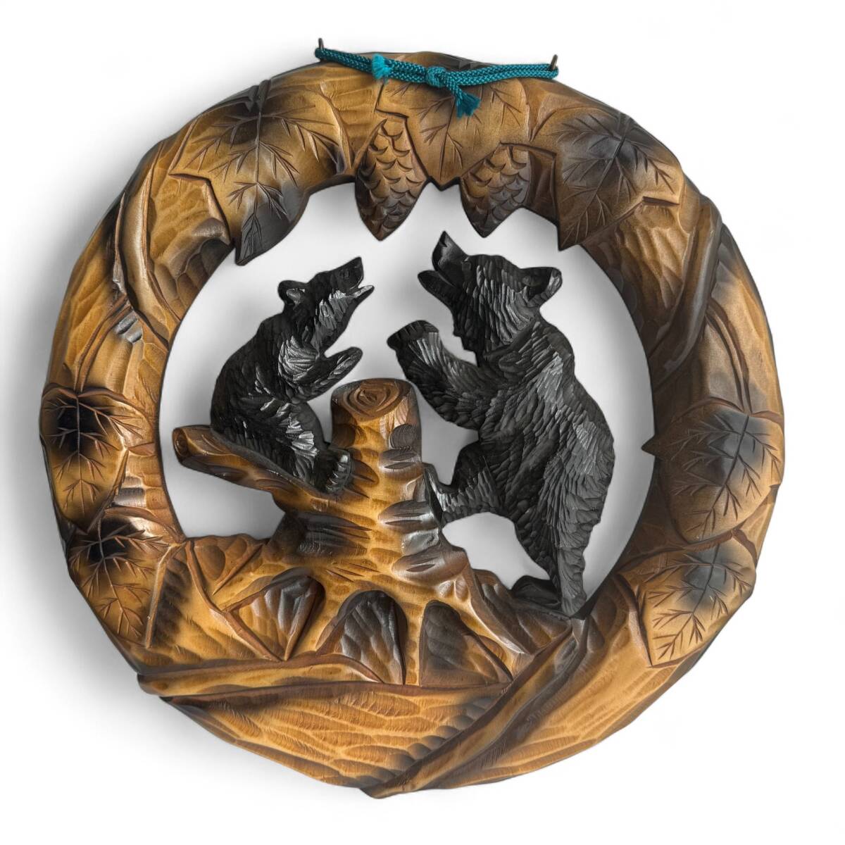 - M7-1483 木彫り 親子クマ 壁掛け 飾り レリーフ