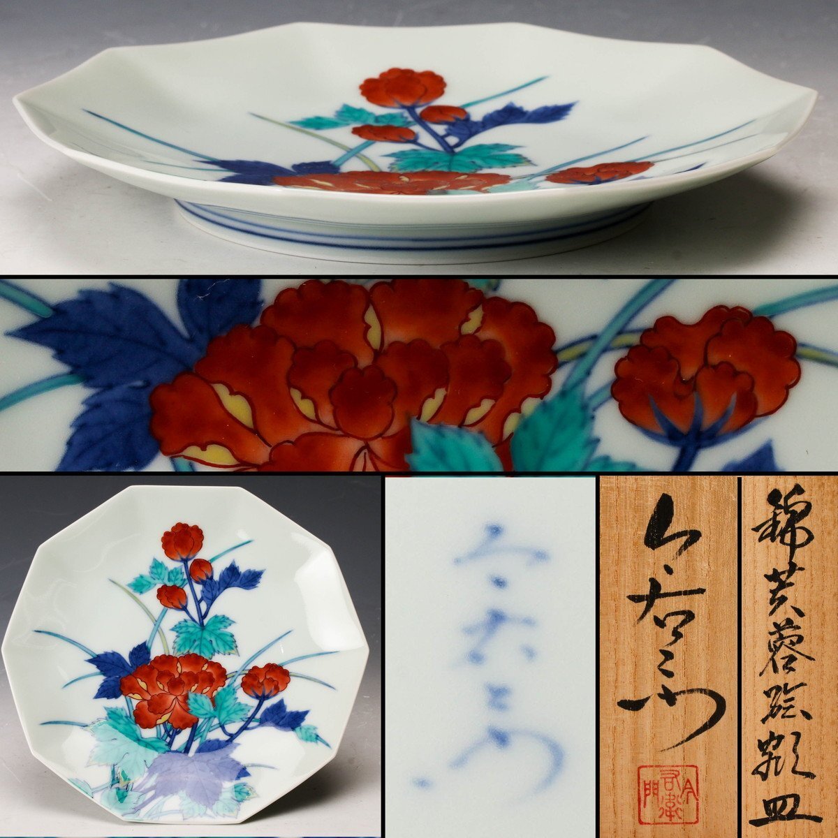 > 【佳香】人間国宝 十四代 今泉今右衛門 錦芙蓉絵額皿 共箱 皿立 本物保証