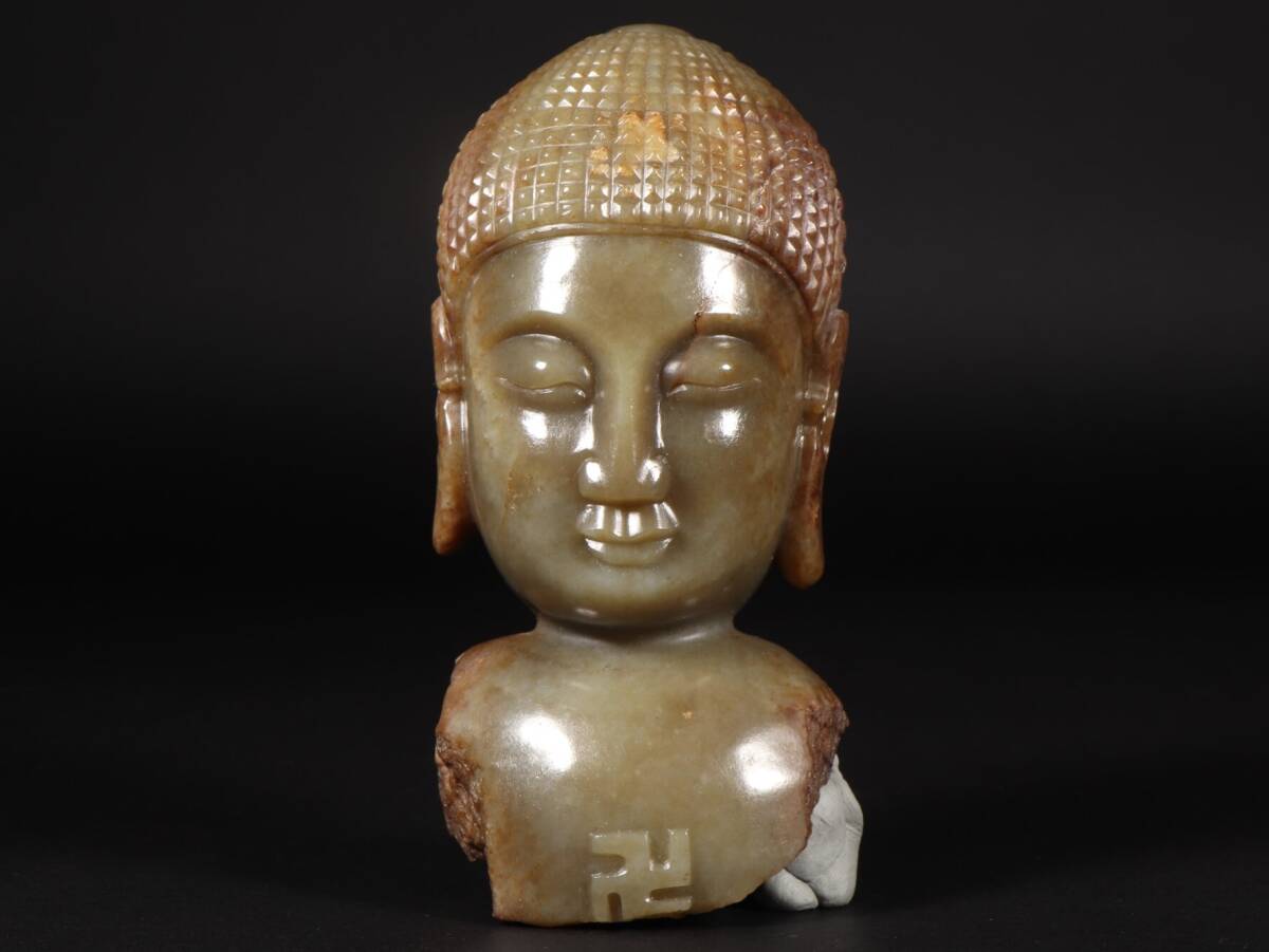 - ▽鴻▽唐朝時代 高古玉 和田玉彫 仏頭 仏像 時代物 中国古美術 骨董品