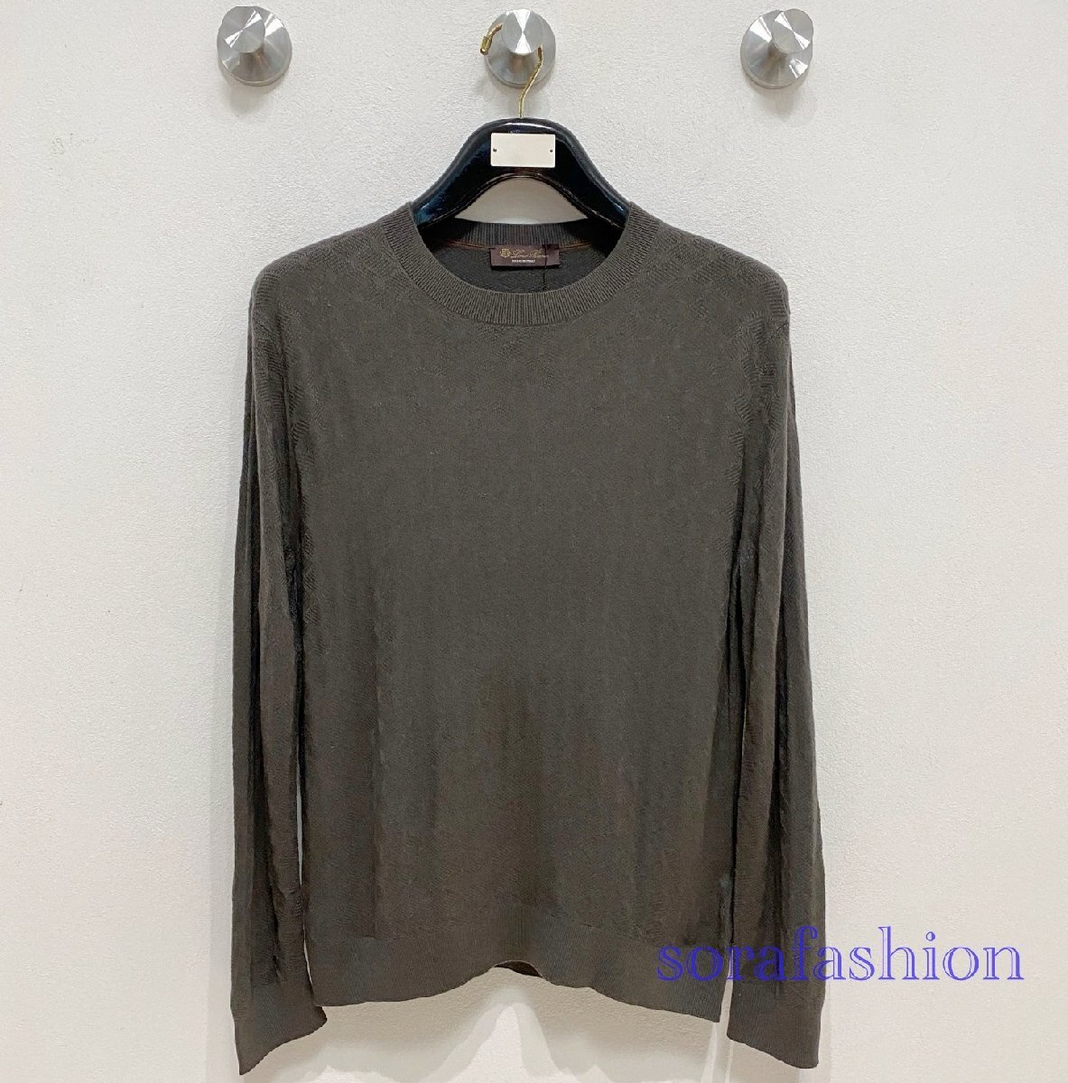 - Loro Piana ロロピアーナ メンズニットT-シャツ 長袖 トレーナー クルーネック グレー Mサイズ トップス 丸首 秋物 紳士服 ジャガード