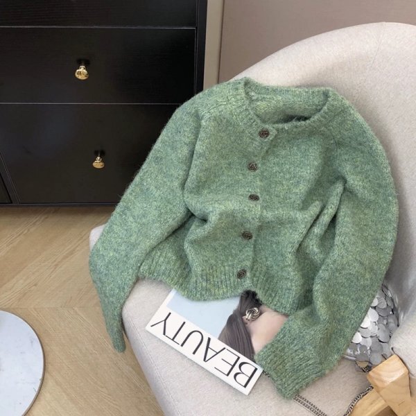 - mgm 2510 ニット セーター カーディガン 羽織物 アウター チュニック オシャレ フリーサイズ 前開け シンプル グリーン系